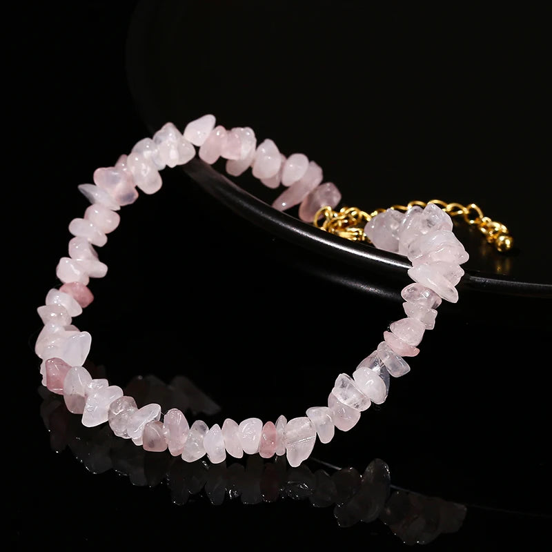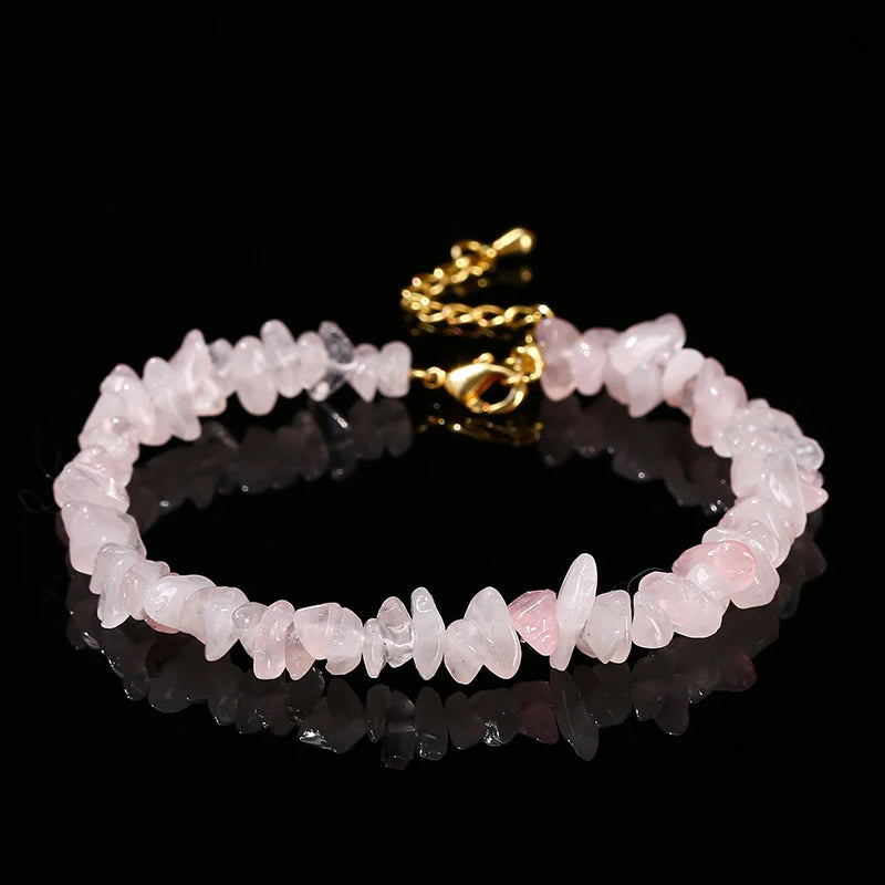 El Cuarzo Rosa es conocido como la piedra del amor incondicional. Cada fragmento de esta pulsera vibra con una energía maternal que envuelve tu corazón, disolviendo poco a poco esas barreras que construiste para protegerte del dolor. Te ayuda a soltar el resentimiento, a perdonar (especialmente a ti misma) y a abrir espacio para relaciones más auténticas y amorosas.