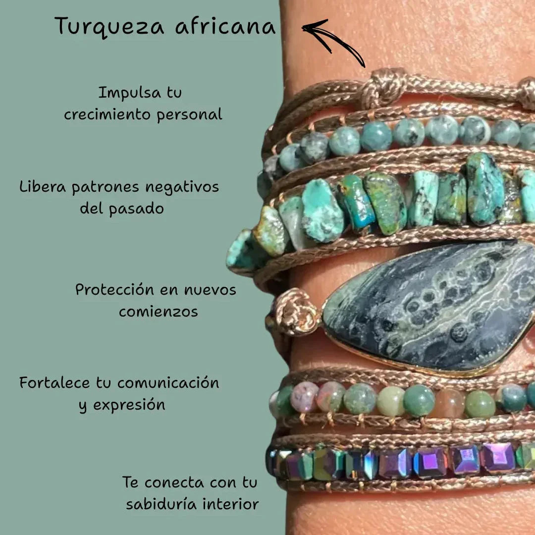 Esta piedra sagrada de color verde azulado calma el ruido mental y abre los canales de tu intuición. Cuando la llevas contigo, comienzas a confiar en esas primeras respuestas que tu corazón te da, antes de que tu mente las cuestione.