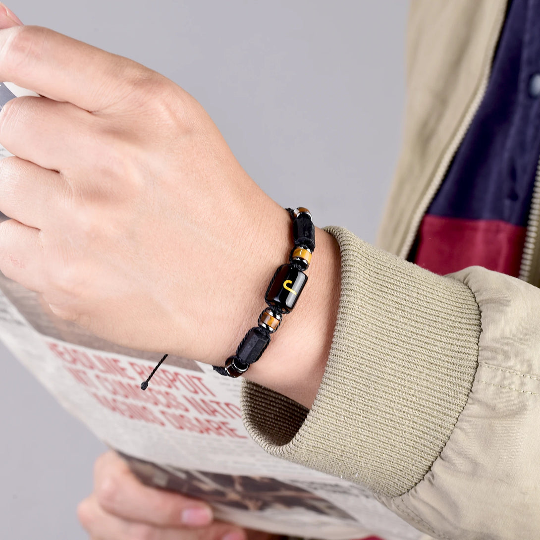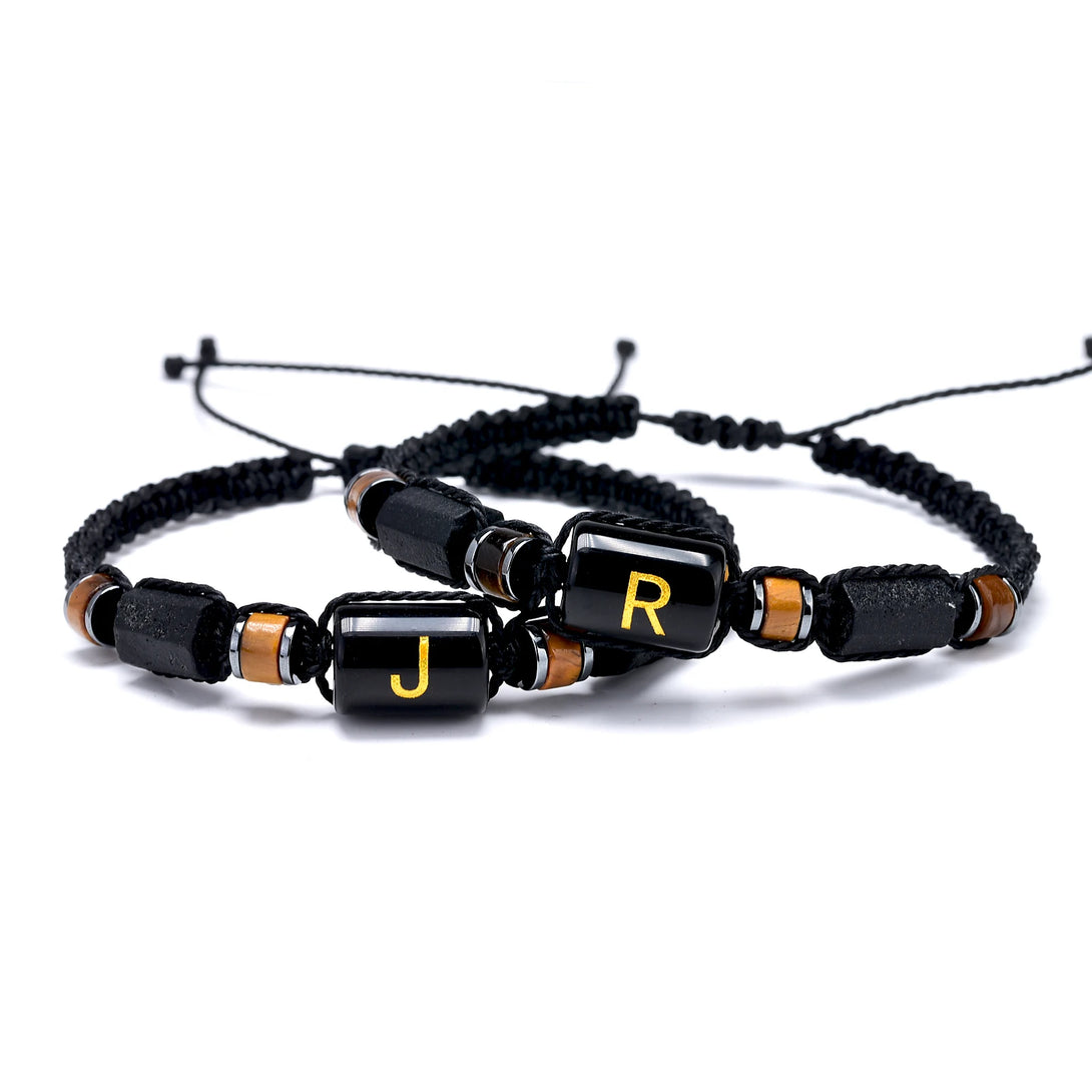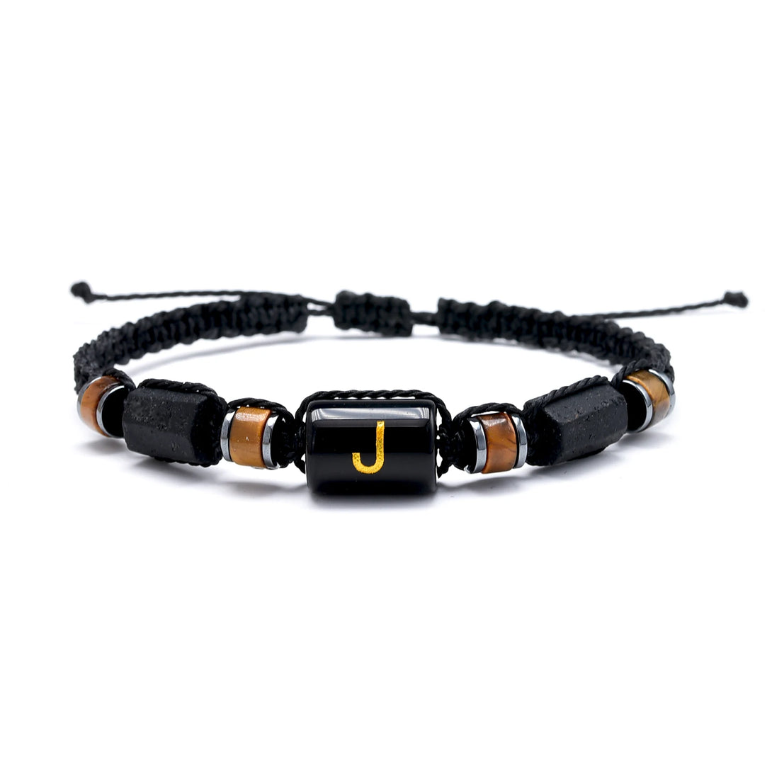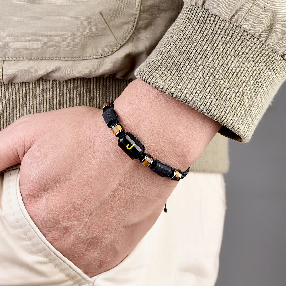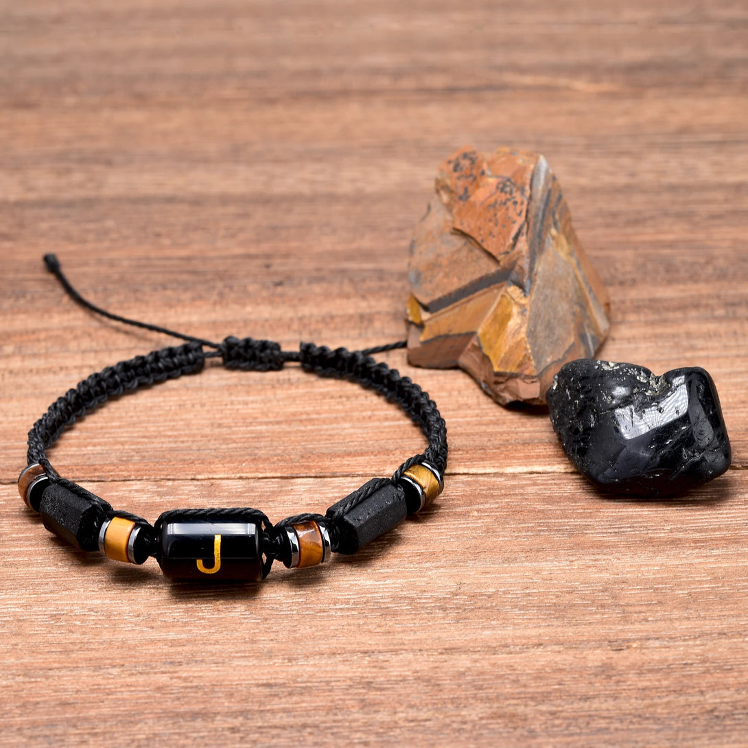 - Materiales: Turmalina negra natural, Ojo de Tigre genuino, cuenta personalizada con inicial